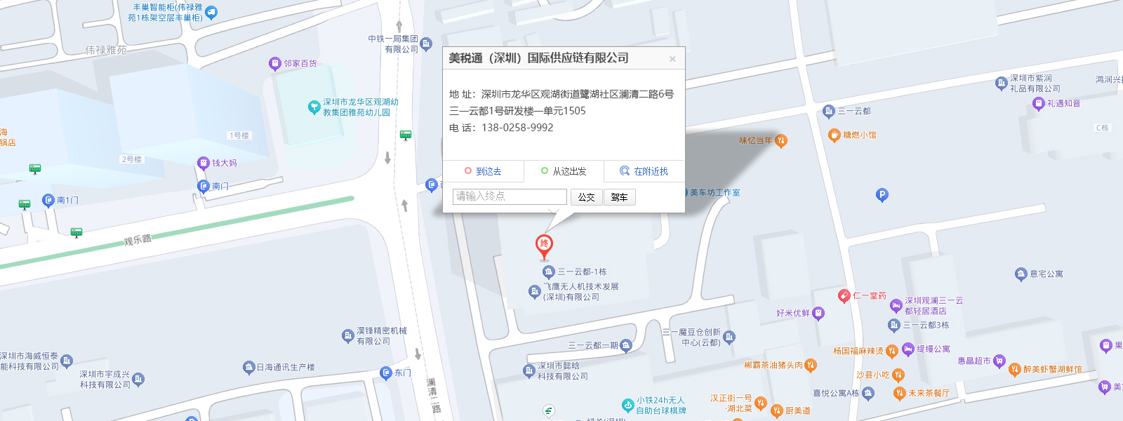 深圳市龙华区观湖街道鹭湖社区澜清二路6号三一云都1号研发楼一单元1505